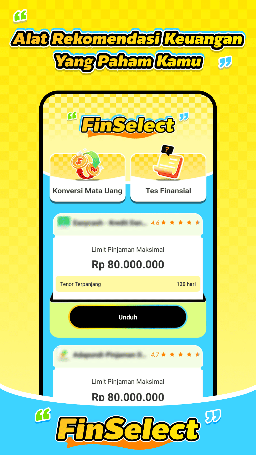 FinSelect adalah platform rekomendasi aplikasi keuangan cerdas yang dirancang khusus untuk pengguna Indonesia. Melalui mekanisme penyaringan yang ketat dan algoritma profesional, platform ini secara akurat merekomendasikan aplikasi keuangan sah yang terdaftar dan berlisensi resmi oleh OJK (Otoritas Jasa Keuangan Indonesia). Baik Anda membutuhkan pinjaman jangka pendek, pembayaran cicilan, atau ingin mempelajari informasi keuangan, FinSelect dapat membantu Anda menemukan layanan keuangan yang aman, patuh, dan andal.